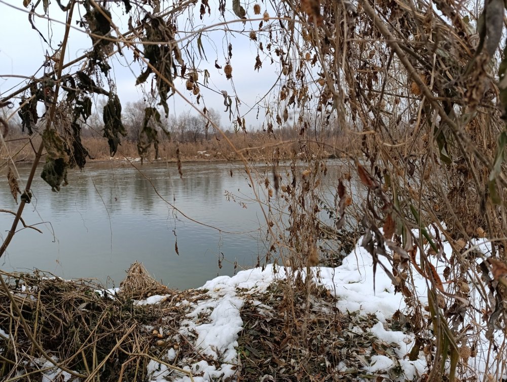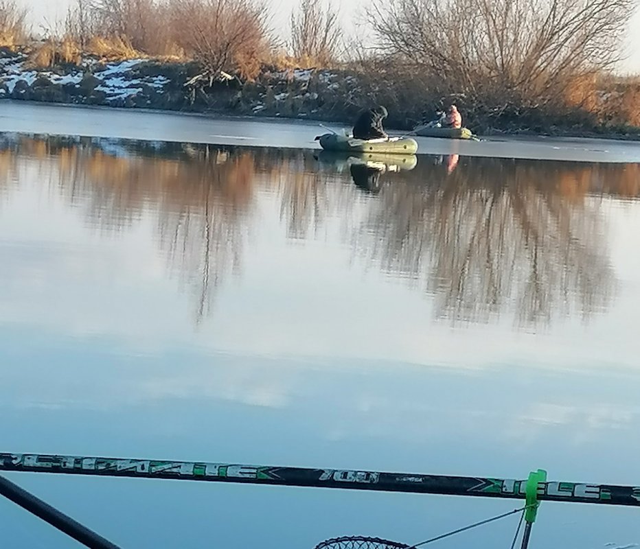 Перетащили наши суденышки поближе к руслу. Там тоже лед, но потоньше.