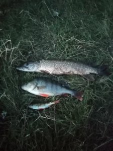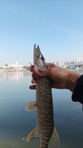В очередной раз подсек и чувствую небольшую тяжесть, рыба стала сопротивляться. По повадке не похоже на леща или карася, потом понял - щука некрупная. Спустя пару минут поймал еще такую же, скорее всего стайка проплывала.