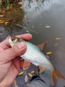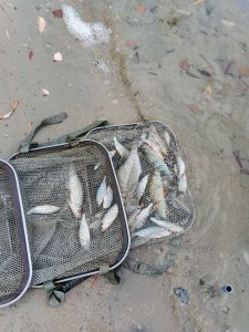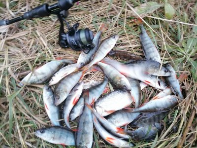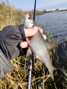 В первый день плохой погоды. Вчера ещё загорал на дачном участке между грядок. А сегодня оделся почти по зимнему .Приперся на водоём. Никакие какие карты не сходились. Но всё таки. В 10.40 уже закидываю удочку. Замесил две пачки прикорма, печенье, разбодяжил всё это дело стаканом кормового мотыля. Первая сорога клюнула на мотыля, потом ещё одна. Потом прикормочную нишу заняла уклейка. Но довольно неплохая, жирная. Ловил на мотыля и опарыша 50/50. На 16 гамике. Итого до 15.30. 67 уклеек, 8 сорожек, 6 окуней, 1 подъязок. Слил одного подлещика при вываживании .Вода парит, а значит сильно остывает. Думаю по улову пойдёт. На данном водоёме, да в такое время года.