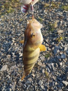 Прижался к камушкам. Покормил точку ... и поймал 3 ерша.