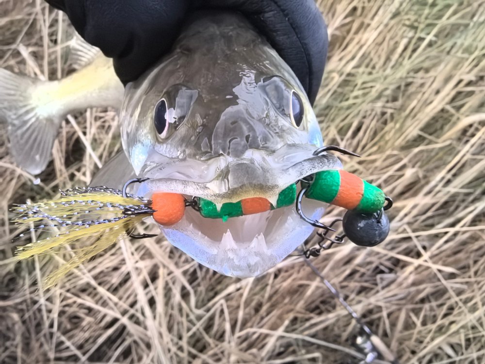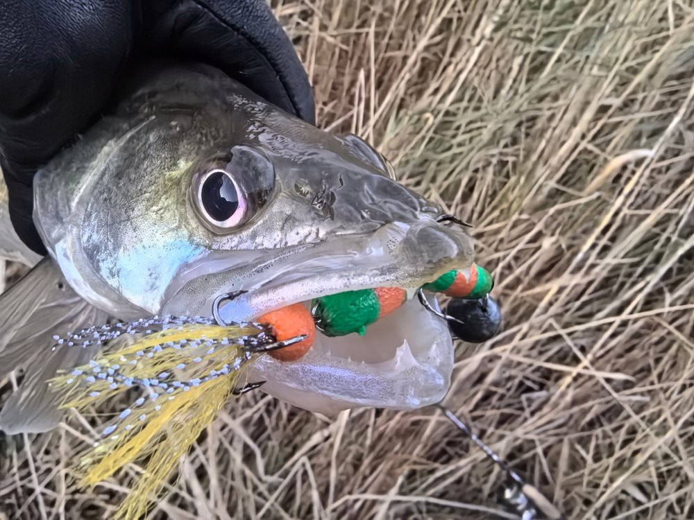 23:36 — лёгкий тычок. Сначала думаю: «Опять коряга…» Но нет! Кончик спиннинга задрожал, фрикцион звонко затрещал — и вот он, мой первый клыкастый друг этой ночи: 1200 граммов чистой радости.