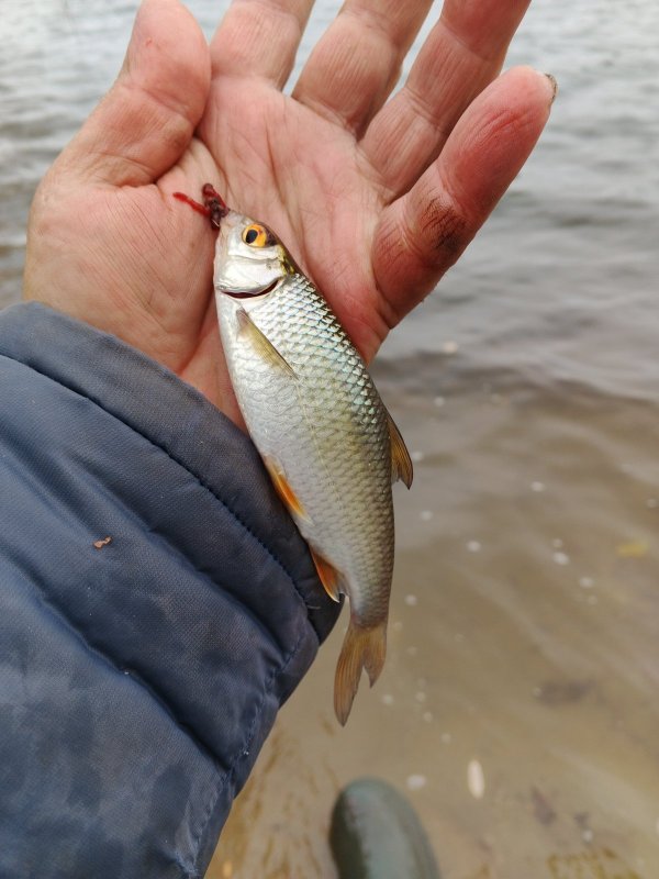В 8.30 на более-менее путевом месте. Самые пожалуй уловистые затоплены из-за высокого уровня воды. На метр с лишним бы поменьше с рыбалкой в этот период было бы лучше. Маховая 8-ка. Глубина 3 м. Замесил две пачки прикорма, сухари. Из насадок использовал мотыля и опарыша. Клевало очень редко. С натягом изловил два подлещика, 2 неплохих окуня, плотвички. Мелкие подьязки периодически сбивали насадку. Бонусом плотва на 180гр. Есть же рыбка. В 14.00 закончил ловлю. Сезон не закрыт. С такой погодой ещё ловить и ловить.