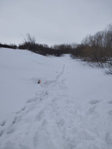 Обратный путь был облегчен сформированной дорожной от проезжавших мимо снегоходов, за что им безмерная благодарность!)
