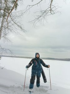 К счастью: давно уже завалялась пара снегоступов, в комплекте только легкий рюкзак, камера, безмотыльные мормышки в небольшой компактной мормышнице, которая легко помещается в карман и очень удобна для дальних тяжелых походов, и бур в чехле. Эхолот оставлен дома, по моим ощущениям в рыбалке на мелководье в основном мешает , чем помогает, постоянно на него отвлекаешься и "застреваешь" в одном месте в попытке разглядеть хоть что-либо