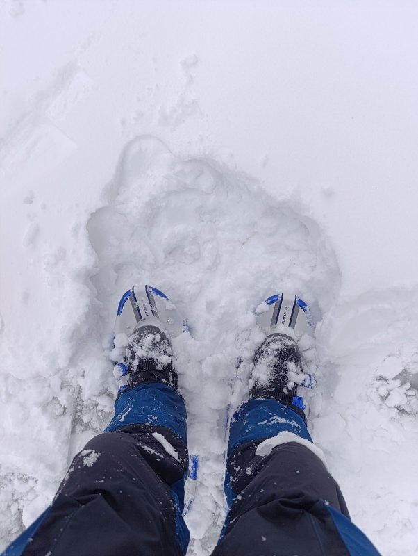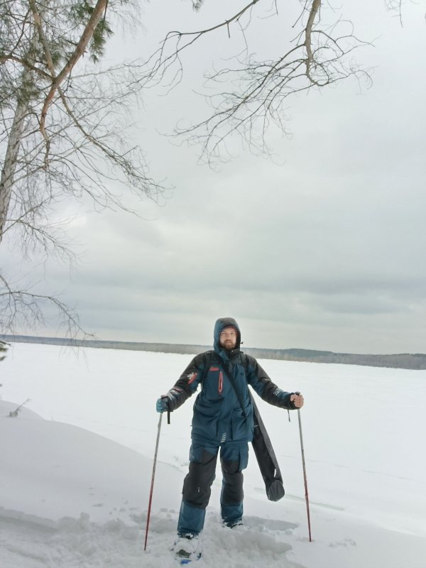Рыбацкие изыскания начались около 10 утра. Акватория пустынна и заснежена. Ветерок прям бодрил. Передвигаться сложно, перемёты значительны, наст валится, но воды под снегом нет. Лёд сантимов 80 "железно"!