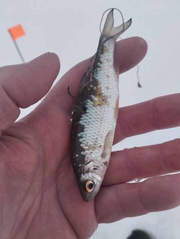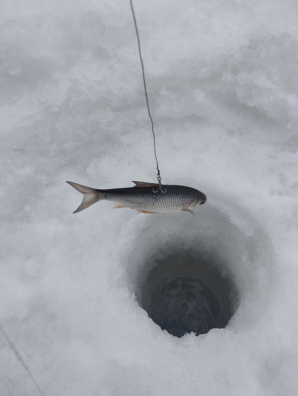 На 10-ой лунке бель была найдена, примерно в 50 м от палаточного городка ,ближе к входу в канал. Быстрый закорм мороженными остатками мотыля, мормыша и дунаева. Клевать начало сразу! Сорожка под сотку , ну думаю сейчас на 0,085 покайфую , ничего подобного 10-30-50 гр ,на каждую 80-100 граммовую 15 шт мелочи. По итогу всего 4 шт полусъедобного размера , остальное в лунку. Подлещика и окуня не было, зато приходили ерши 20 гр. На крупную уклейку не пошел, хотя знал где она .