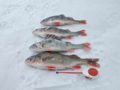 . Маленько поймал.Все только на игру. Побегал по лункам. Но у вы и ах. Со стороны немецкого посёлка ловили ельца и окуня, но туда не пошёл. Ловил с 9. до 16.00..