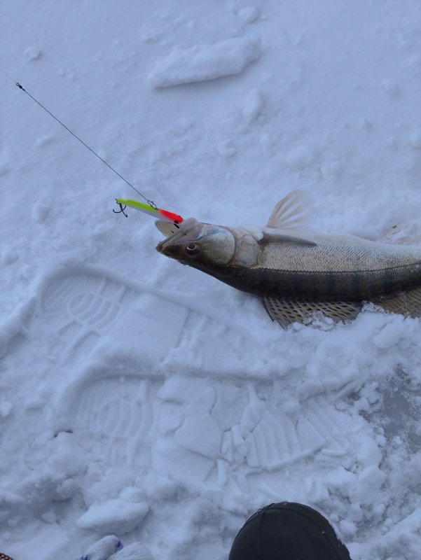 Возле берега рыбы не нашел и кайт серфингисты учатся летать... Шел пешком 2 км примерно в белую пустыню по накатанному следу снегохода. Идти тяжко по целине, без лыж. Иногда водичка под снегом, проваливаешься 30см. Нашел точку ямку первый раз 2 окуня уговорил, второй раз судачок карандаш на мормышку. Трудовая зимняя рыбалка! , когда же лето уже )))