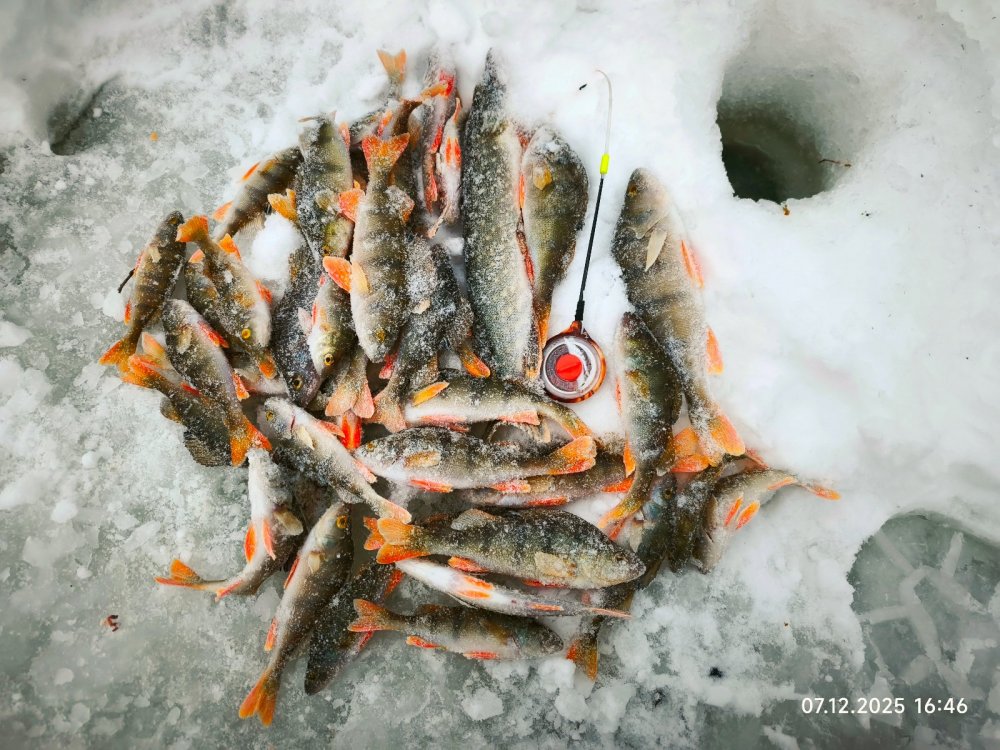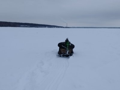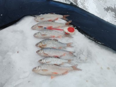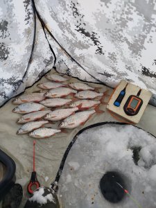 Сегодня с утра решили опять поехать туда. Выехали пораньше , на льду были в районе 9 час. Но ситуация в крайне изменилась, поклевок не было совсем. Яма была абсолютно пустая. Чуть позже я посмотрела в сводках, что уровень воды в эти сутки был поднят на 28см, а это сильно ощутимо, так воду ещё не поднимали. Скорей всего это и повлияло на полное безклевье и скорое возвращение домой. Вот как-то так мы отрыбачили эти 2 дня .