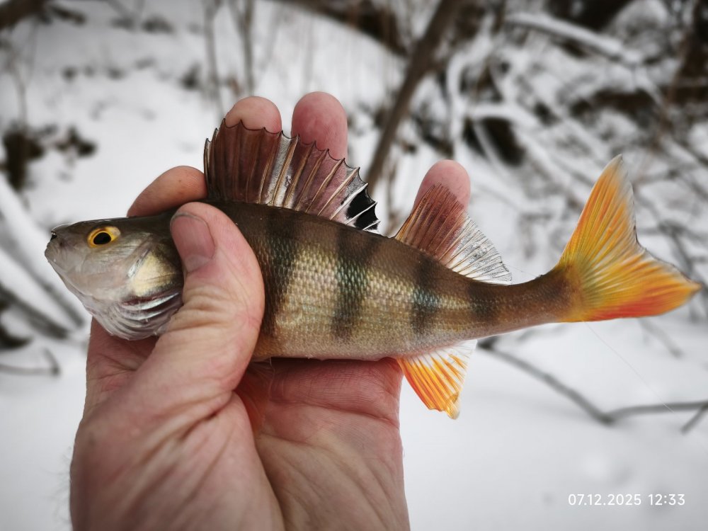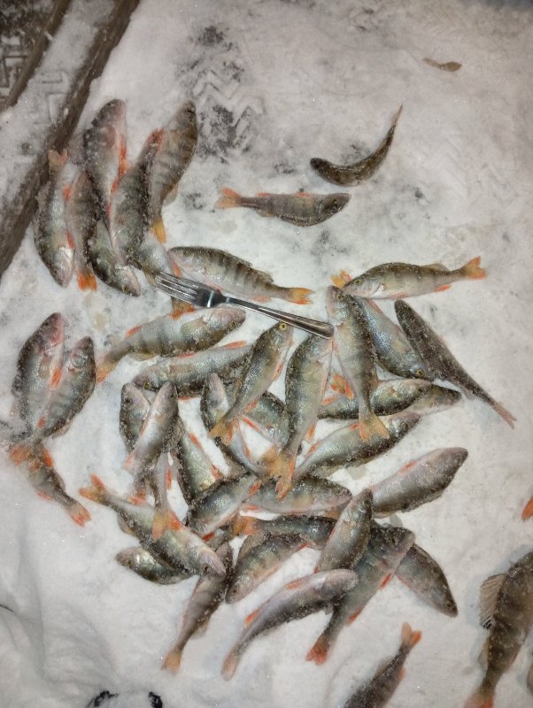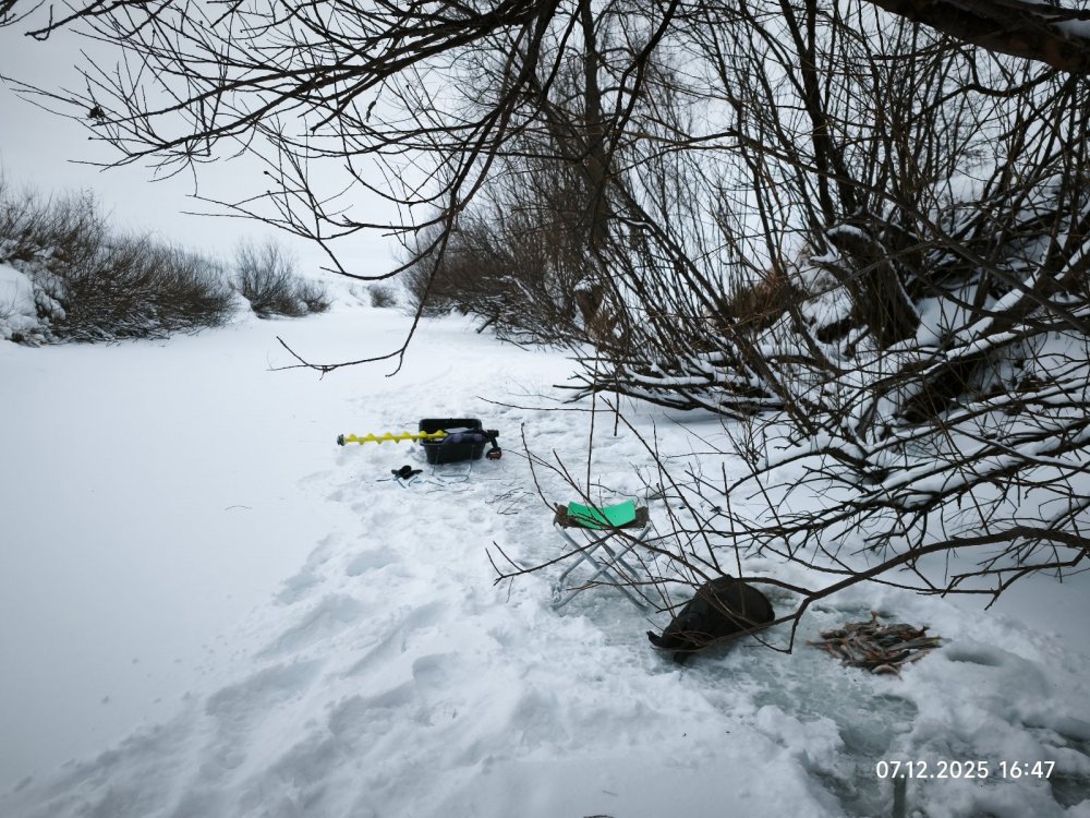 Клев происходил какими-то наплывами. Если клевало, то на всех лунках и затихало точно также, так как яма небольшая по объему, пришла к выводу, что что-то большое просто отпугивало, когда рыба скапливалась у лунок. Когда немного рыбки поймали, решили проверить и другие места, но там поклевок не было. Видели как мальки стояли у берега,так как местами лёд от берега отошёл. Да и, в принципе, лёд скоро уйдет, река открыта, а в тех местах сильное течение. Местами промоины, ходить немного страшно. Было дело проваливался у меня папа в тех местах на глубине 7метров ,и ощутил на себе все прелести обского течения, когда его просто затягивало под лёд. Поэтому ходили с большой осторожностью, передвигались от ямы до ямы по берегу.