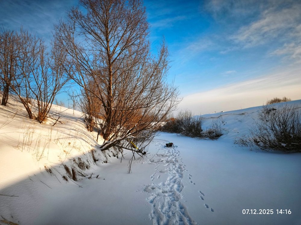 Всем доброго вечера. За последние две недели чаще всего мы посещали протоку в районе ЗМ, а в прошлые выходные ездили на ОВХ в районе Спирино, где судак не особо порадовал. Вчера на проверку решили на вечер съездить на С О. В два часа дня вызвали машину, доехали быстро за минут 20. А вот добирались не с такой лёгкостью, как хотелось бы. Путь по нетоптаным тропам занял больше часу. Снега очень много, дорожек нету, проваливаешся выше колен, ощущение не из приятных.
