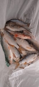 Решил перед выходными пбывать еще раз на БЗ , вчерашние лунки дали 2 -2 сорога -подлецы. К14 00 решил сменить место ближе к руслу там и был до 16 00, итоги на фото глубина 7,5метра с небольшим потягом.