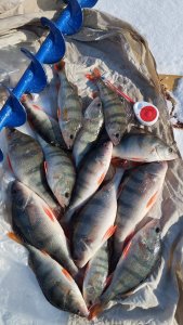 Новосибирская областьВсем привет! В очередной раз выбрался с напарником на Обское водохранилище . Цель найти активную стаю окуня и попробовать уговорить на поклевку. Несколько раз находили большое количество рыбы, но она не только отказывалась клевать но и долго не находилась на одном месте. Пробуришь лунку, если повёз то несколько штук поймаешь и дальше искать. Ближе к обеду нашли стайку окуня, который плавал на небольшом пятачке, вот тогда и удалось хоть немного но спокойно половить. Без обидных сходов и одного обрыва мормышки не обошлось. На наживку ни поклёвки, весь улов на безмотылки, в основном на чертика. Рыбалкой довольны, чего и вам желаю. Всём добра
