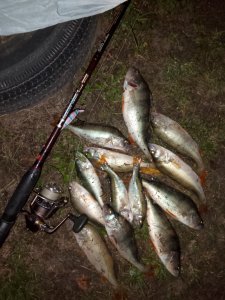 Сегодня, с 15 до 17, рыбачил на отводной поводок. На берегу солнечно и слабый северо-восточный ветер. Возле уреза мелкий полосатик «по взрослому» – шумно и с брызгами, гоняет малька. Окунь по прежнему держится далеко от берега и не часто интересовался подбрасываемой приманкой. Гораздо чаще на балерину и офсетник висли пучки тины, хотя ловил на каменистом дне с мощным течением... С трудом удалось поймать чуть более десятка окушков. Пассивный мелкий хищник не повлиял на позитив от рыбалки. Всем удачи на всех берегах!