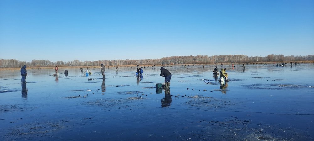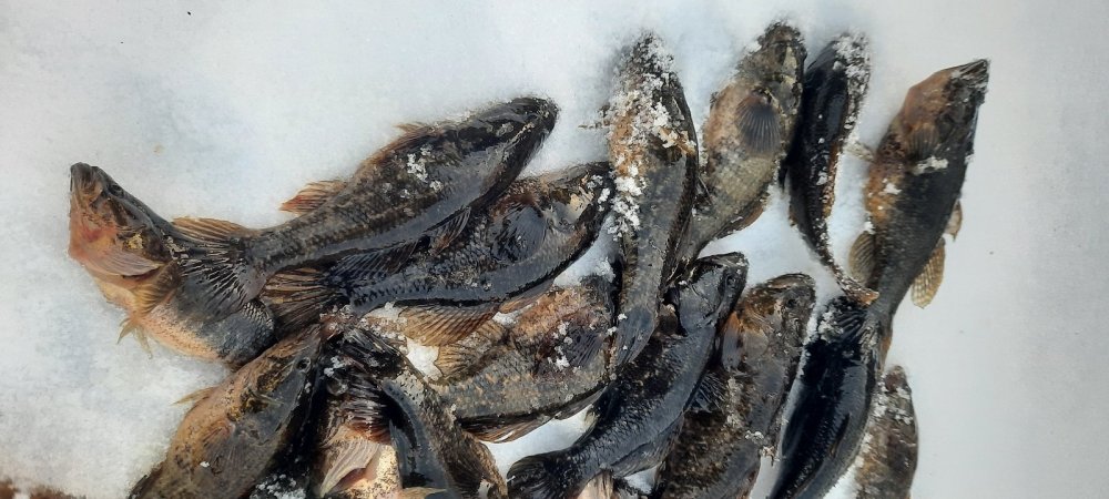 Прибыли к 11, похоже я не один изучил скотсети, машин как на парковке в торговом центре перед новым годом и все озеро в рыбаках!!! Лед отличный ! 6-8 см, держит даже 120+ кг, трещит. Народ бегает, ловит тонущие удочки в лунках, клев прет, у всех кучки. Как и раньше , техника проста, кто нашел пятак или ротанью тропу, ставит 3 удочки и спокойно ловит , свой пятак не нашел , к обеду стал бегать по старым лункам, результат отличный и удар прям в руку. Ротан 30-100-150 гр , одному мальчику рядом подсунули огромную судаковую махалку, похоже и с такой же блесной, долго ждал он ,пока все ловили, в итоге ОДИН , но на 300-400!!!