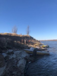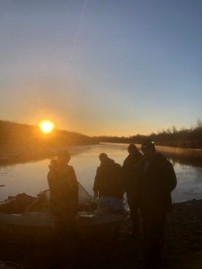 Перетащили наши суденышки поближе к руслу. Там тоже лед, но потоньше.