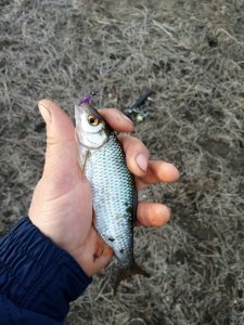 Неожиданно высвободилась пара часиков свободного времени и речка как раз оказалась рядом. В машине для таких случаев имеется дежурный комплект. Он вот и пригодился. На трофей надежды нет по этому, вечер до темноты баловался мормышкой. К медленной и плавно проводке по маленькую приспособился и рыбка отозвалась. Не много по клевало. Мормышка самодельная 0.2 грамма свинца. Шнур 0.3 PE грубо, но ловится, "чёрт возьми!" Думаю сезон закрыт.