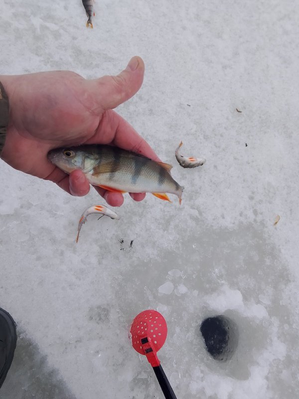 Окушок клюет, но холодно да и добыли уже прилично.