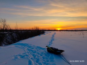 Съездили опять компанией на мелкоречку. Подо льдом, как водится, окушок. Лично я щучки не увидел. Хотя особо не искал и много не бурил. Сел на вчерашнюю лунку и потихоньку вытряхивал полосатика. Сегодня активность значительно ниже, чем вчера. В основном, с утра до 12 часов. Потом редко клевал. Хотя бродил окушок повсеместно почти. Сменил несколько мест под кустиками, что-то вытряхивалось. В целом, рыбалкой доволен, 3500 гр полосатого забрал, много отпустил.