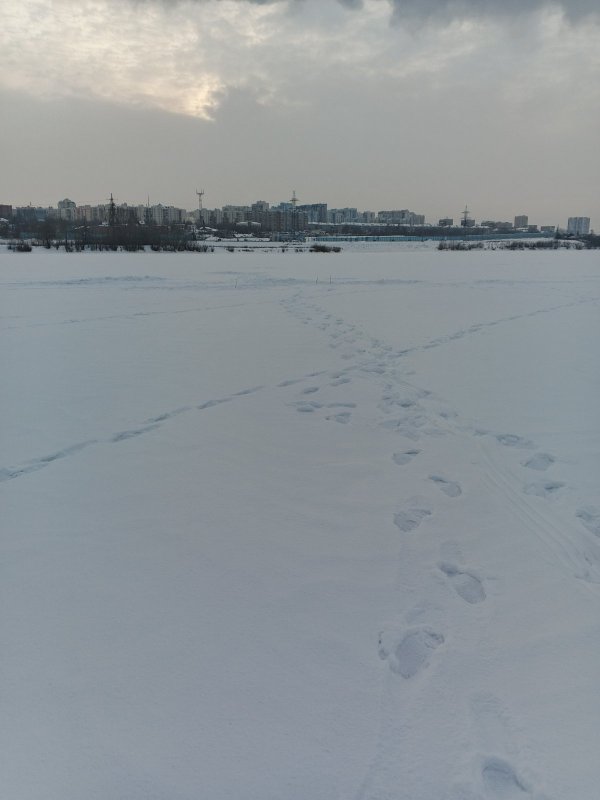 Когда тащил очередную забагренную плотвичку вдоль камыша у берега, вальяжно так, вышла не маленькая щука (по ощущениям 2-2,5кг). Посмотрела, что за суета и пошла по своим делам. Пока телефон достал замерзшими руками, уже отошла от берега, через пар от воды не получилось её снять.