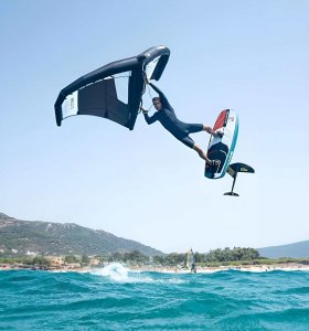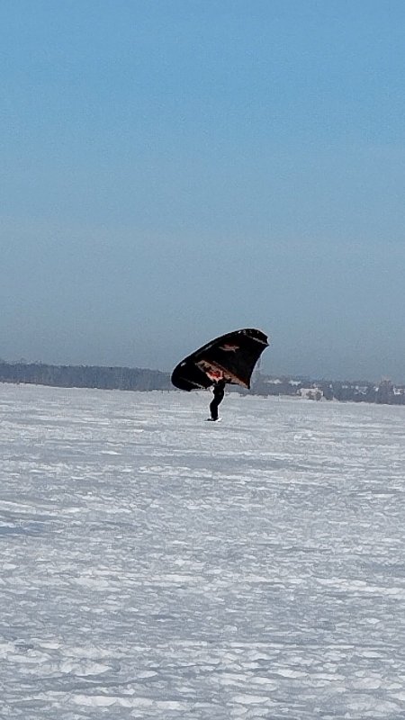 Вообще это Винг современный снаряд, с надувным каркасом, по сути парус в руках , рулишь тем во что обут. Раньше дохрена стоил, а сейчас уже за 45р можно. Требует сильного ветра. Изобретен для катания на гидрофоиле (маленькое подобие судна Ракета), а к снегу северные люди уже приспособили.