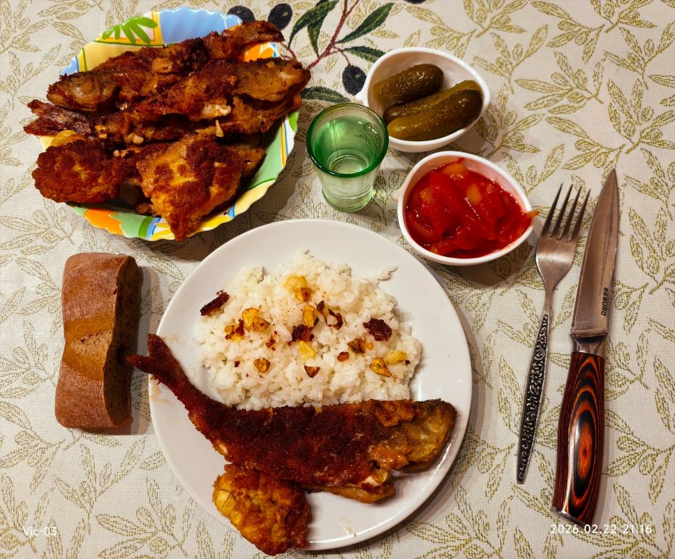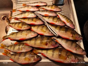 Утром небольшая активность в течение часа где-то, потом по нисходящей. Днëм очень вяло. К вечеру тоже малость поклевал полосатый, но как такового вечернего клëва не было в связи с ограниченным количеством рыбы под лунками. Да и уговаривать окушка приходилось тщательно, стоит неподвижно почти, тупит. Качаешь, качаешь, захочет - возьмёт. В общем, не шибко весело брал. Так, от нервов иногда.