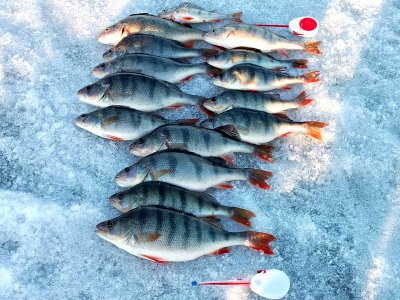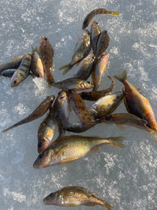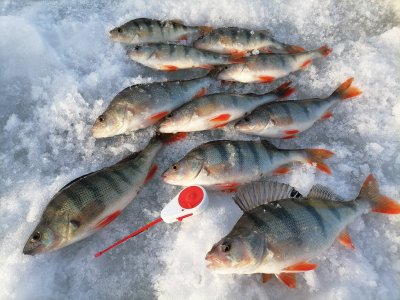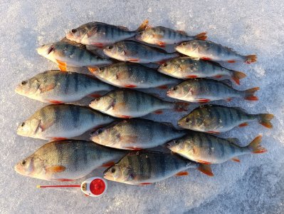 Окунь от 200г до 400г. Меньше отпускал. Общий вес около 4кг