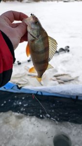Новосибирская областьВсем привет! Всю неделю смотрел на прогноз и думал ну куда поехать в такую погоду. Уже вообще плюнул на эту затею, а последние выезды скучны. Ну вот в пятницу вечером всё таки решил, поеду. Прибыл часов в 9 утра, машин ещё было мало, потом понаехали. Пошёл на свои точки, снега очень много на льду! Уровень на метра полтора больше, чем обычно. На глубинах от 4 до 6 метров в камеру рыб нет, только рачки с горящими глазками. Ушёл ближе к берегу, глубина 3 метра, камера показала чебака и подлещика, решил тут и сесть. Закормил, минут через двадцать поклёвка и лавруха гр на 60 в руках! Да и ладно, поклёвки хоть посмотрю! На игру вообще тишина, на стояк с подигрыванием берёт. Ловил на мотыля и опарыша. Часов в 11 поклёвка хорошая, тяну , думаю подлещик грамм на 300, раз а в лунке окуневая морда! Круто! За час словил 4 окуней, пробовал на игру, игнор. Самый большой окунь грамм 300. В прилове и плотва неплохая. В итоге кг 5-6. За день снега навалило ещё!Всем НХНЧ!