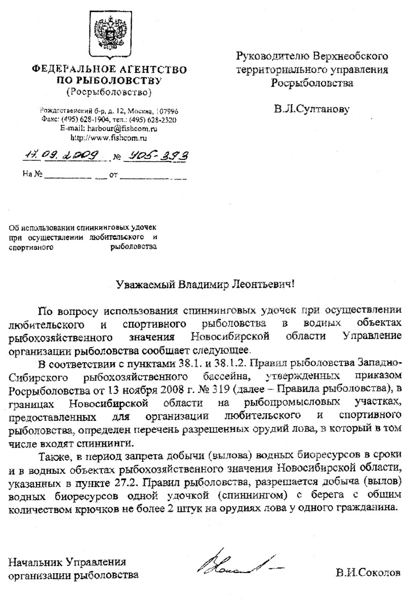 " [26.05.2009] Ответы верхнеобского территориального управления федерального агентства по рыболовству
