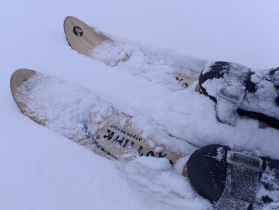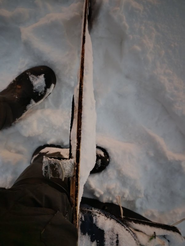 По ледовой обстановке ставлю "неуд". Только лыжи, и то местами в наледь попадали. Пешего рыбацкого люда не видел, кроме нас ещё один лыжник и три "собаки" на всей мощной акватории. Лёд сантимов 60, ручным буром бурится за раз.