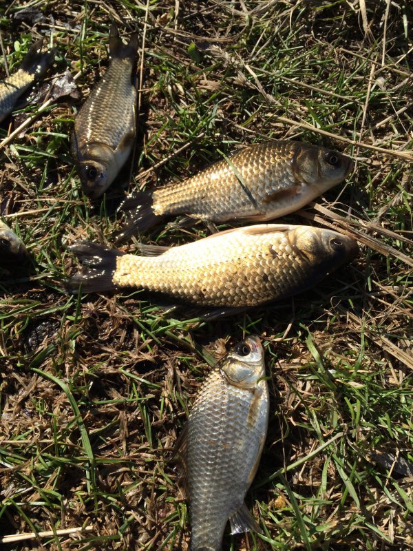 Потом затишье около получаса, и резкий всплеск поклевок - минут за пятнадцать около 8 карасей на три спина.
