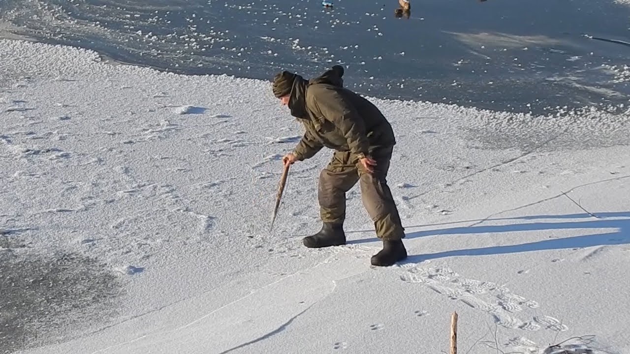 Выхожу из протоки, добредаю до пупка, осторожно сверлю первую лунку.