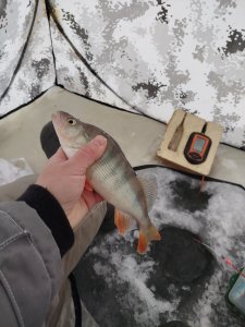 ВестиПривет, всех с новым годом. Вот открылся в новом году, окунёк конечно не морской, но тоже приятно. Ловил как и вчера под берегом на глубине 3 с небольшим метра, на мормышку с подсадкой мотыля и чёртик. Место ловли БЗ, между Парусом и спасалкой. Клёв совсем плохой, хотя рыба в лунке есть, короче в час по чайной ложки. Совсем мелких отпускал. Погода отличная, ветра сильного под берегом нет, хотя порывы случаются. Всем НХНЧ.