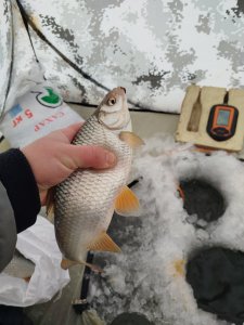 Вести Новосибирская областьПривет всем. Сегодня решил проведать сорогу на БЗ. Погода конечно внесла свои коррективы, но не пропадать же выходным. Ходил, бурил, кормил её, а она не клевала и даже признаков не подавала. В итоге первая поклёвка случилась около 15 часов. С третей попытки ловлю сорогу, минуты через две вторую. Ну думаю сейчас попрёт. Попёрло но не так как хотелось. В течении часа поклевки с промежутком в 5-10 минут. В итоге 5 штук вымучил, ну хоть размер радует.
