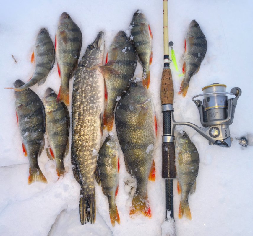 Клевать начало ровно в 17.00, только опускай, мормышка+мотыль, окунь 10-100 гр, в 17.30 все закончилось, поймали 20 шт, даже поорали от радости, вот такое ожидание....