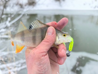 В общем, на джиг 4-5 гр с зелёной тиогой 2.4 дюйма увидел несколько поклевок некрупной рыбёшки, чему и рад!😎 Всё не дома просидел.