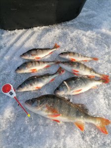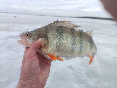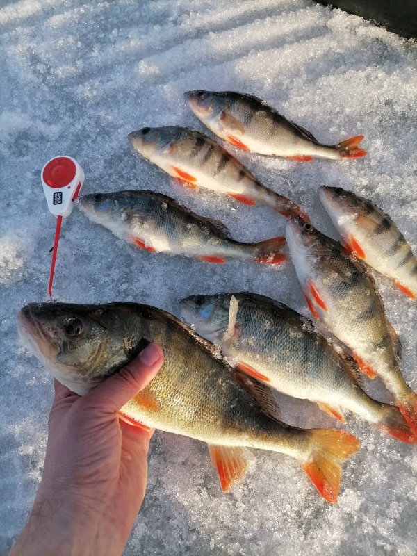 Вести Новосибирская областьРыбачил в том-же месте, где и неделю назад. Окунь по прежнему стоял на той-же локальной точке размером несколько квадратных метров. Несмотря на приличное количество рыбы в камеру и по эхолоту приходилось буквально заставлять его укусить мормышку. Иногда работал чёртик. В приоритете мотыль. Несколько штук попалось покрупнее - 315\340\460г. О Остальные 100 - 200г. Приловом ёрш неплохого размера. К вечеру клёв вообще затих, но рыба по до льдом по прежнему присутствовала.